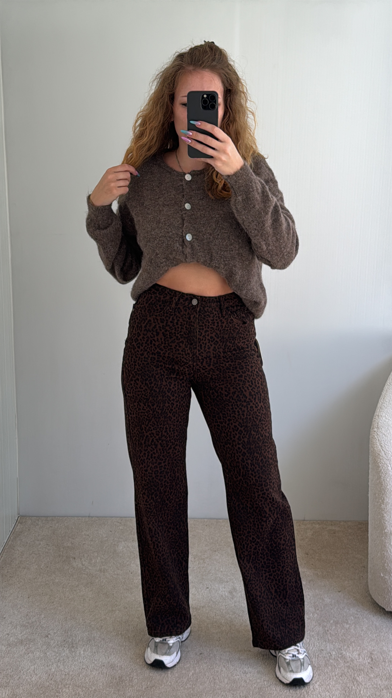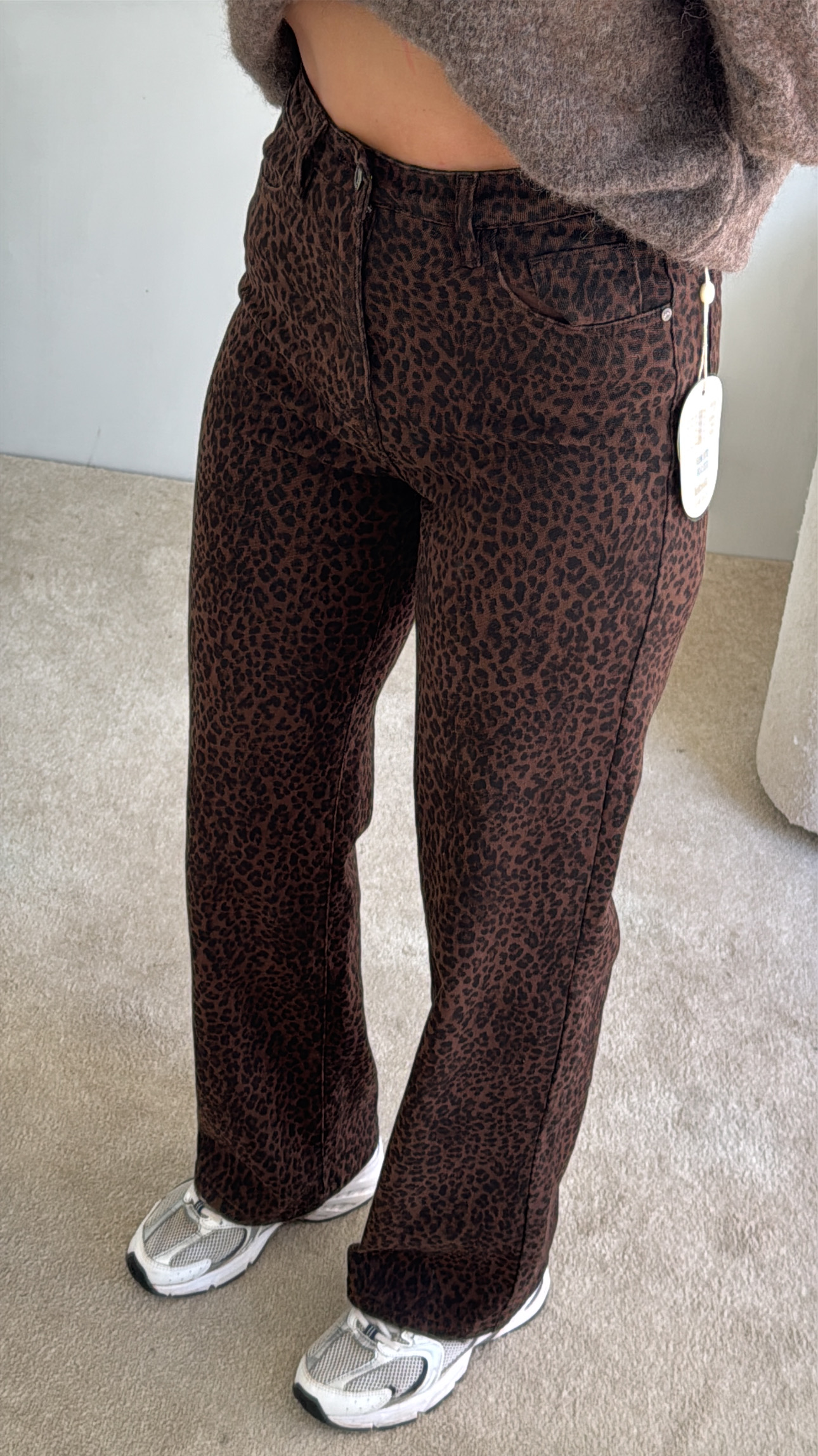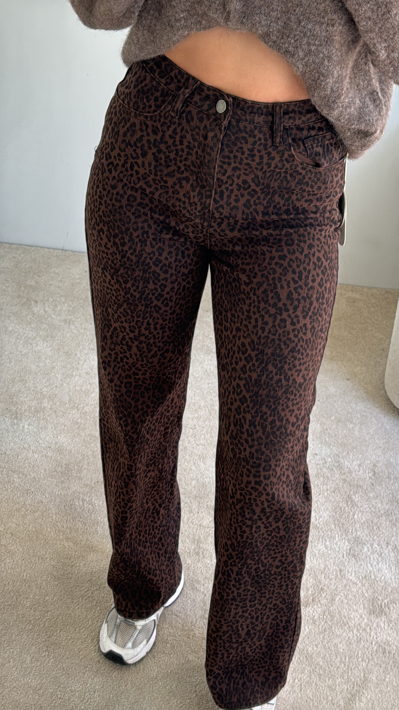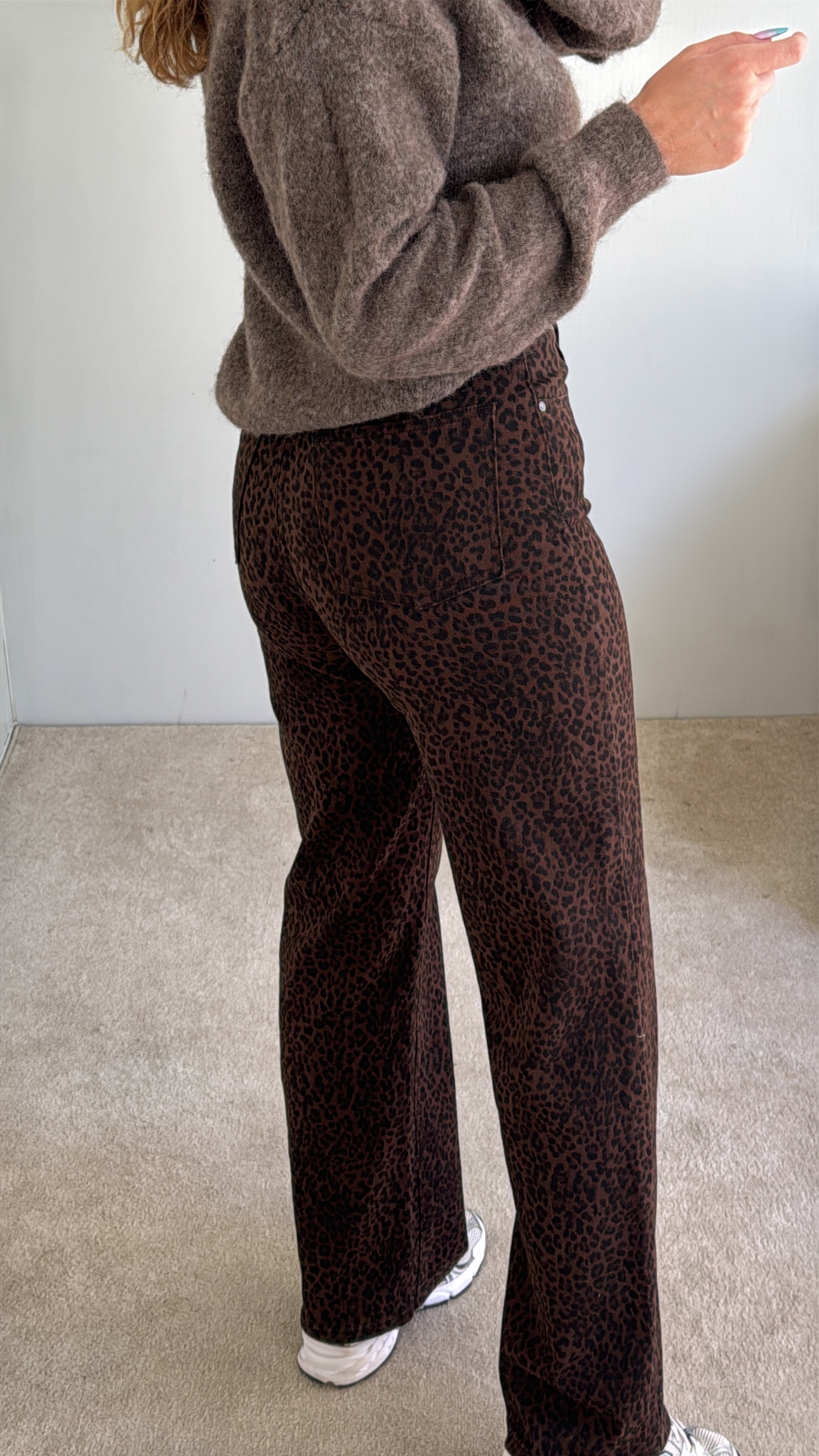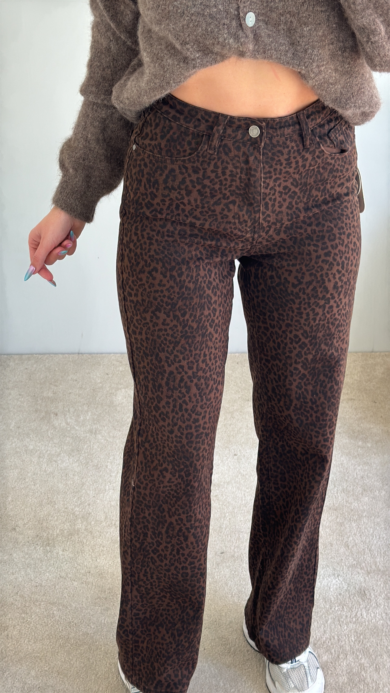 Calça com padrão leopardo, marca REDIAL, Tem algum elastano, Modelo veste 36/38 está com 36 Tem 1.68cm