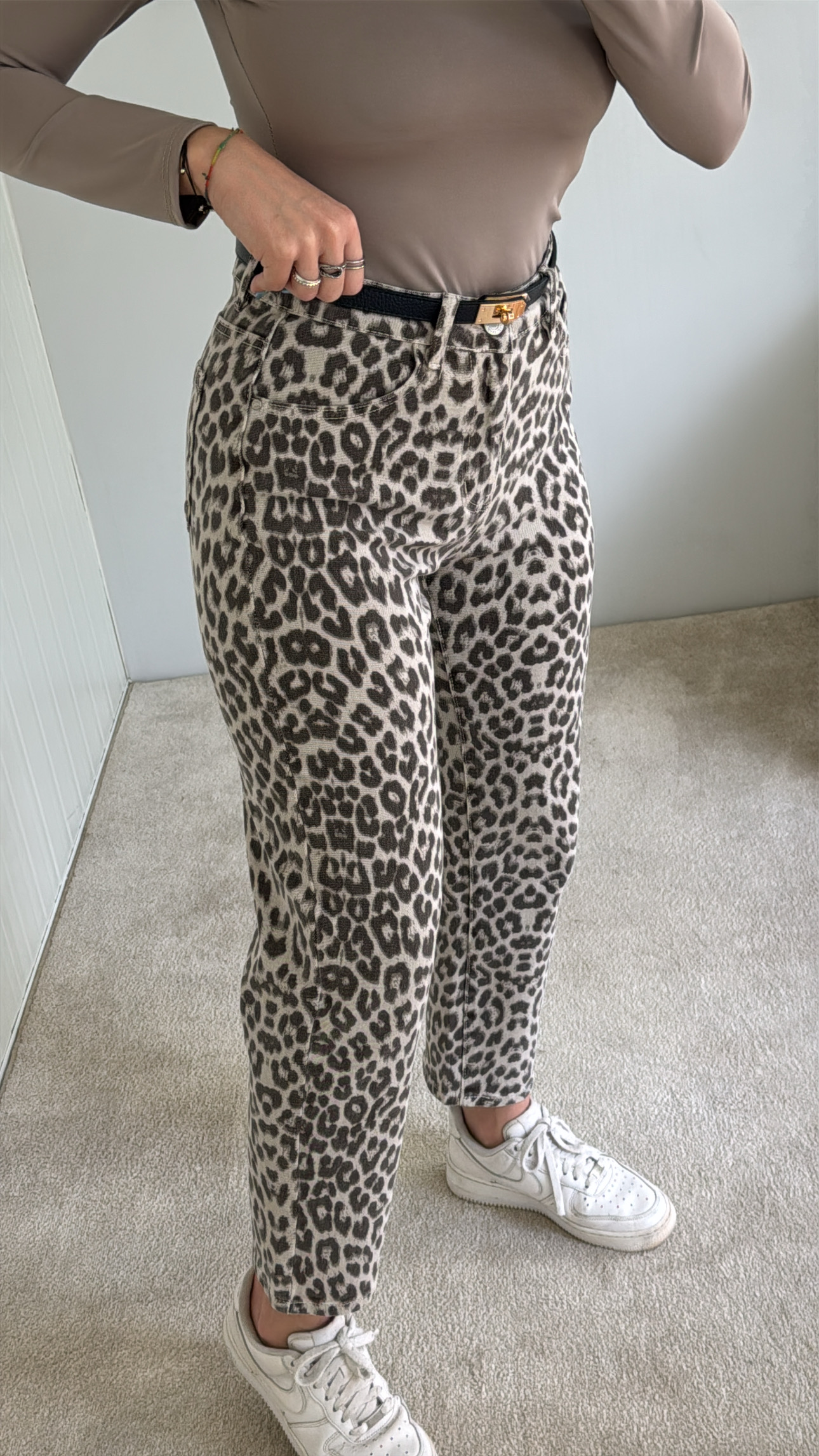 Calça com padrão, MOM FIT , marca Redial Modelo está com 38 , 1.68cm Ganga elástica, contudo veste normal