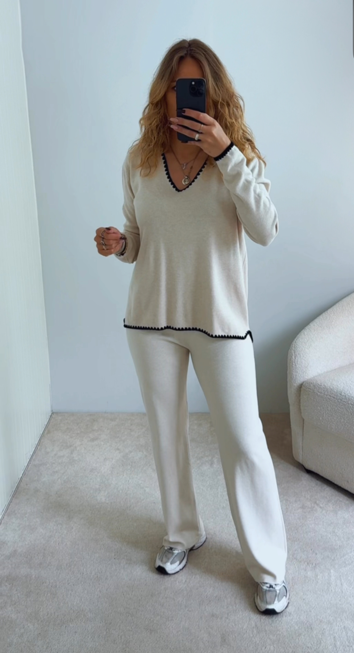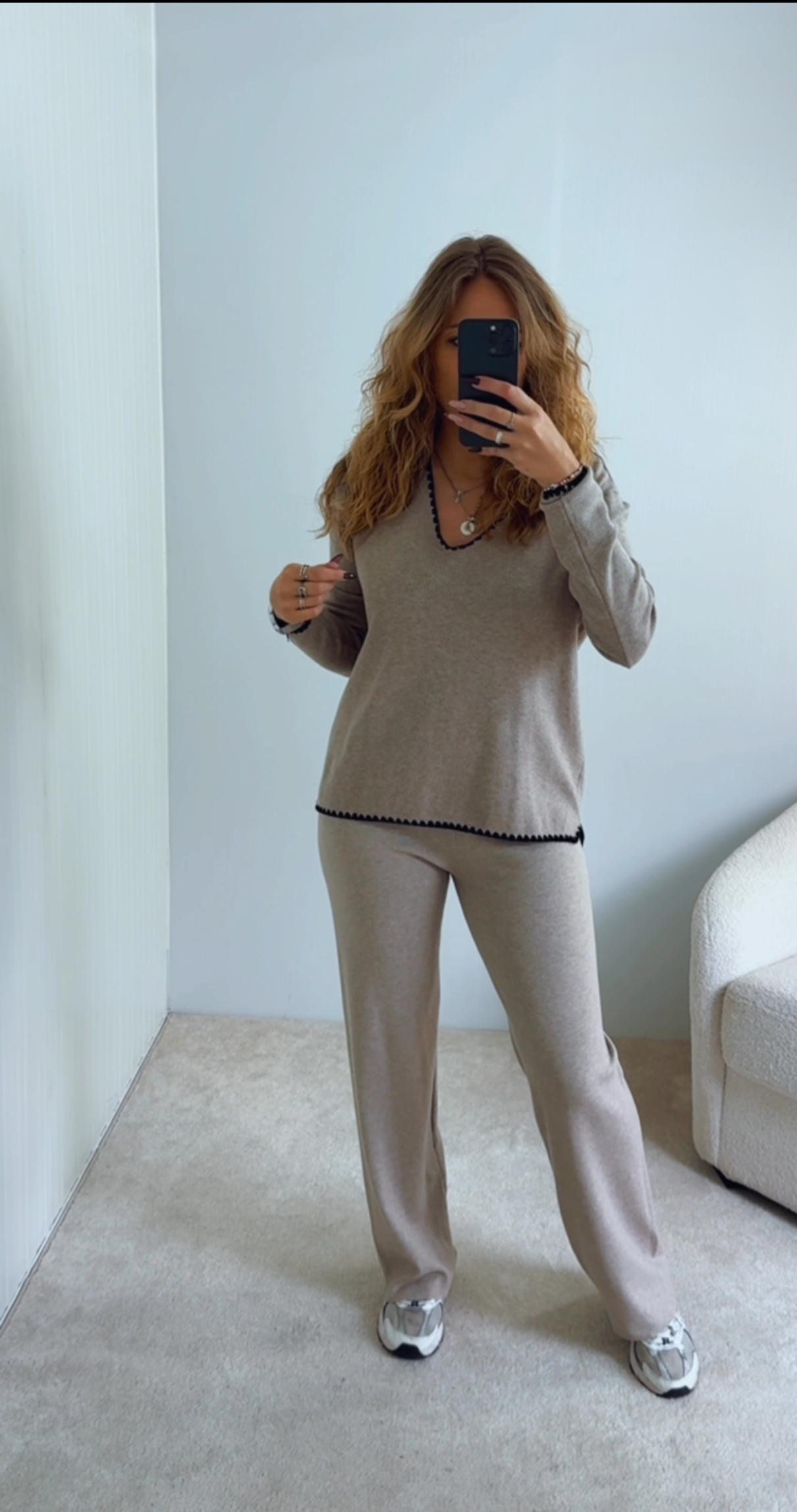 Conjunto de malha, Malha super macia, muito elástica e tão confortável, Calça cinta subida , Camisola com decote em V Veste S até XL , 1,68cm – Modelo 1,68cm . veste M/38