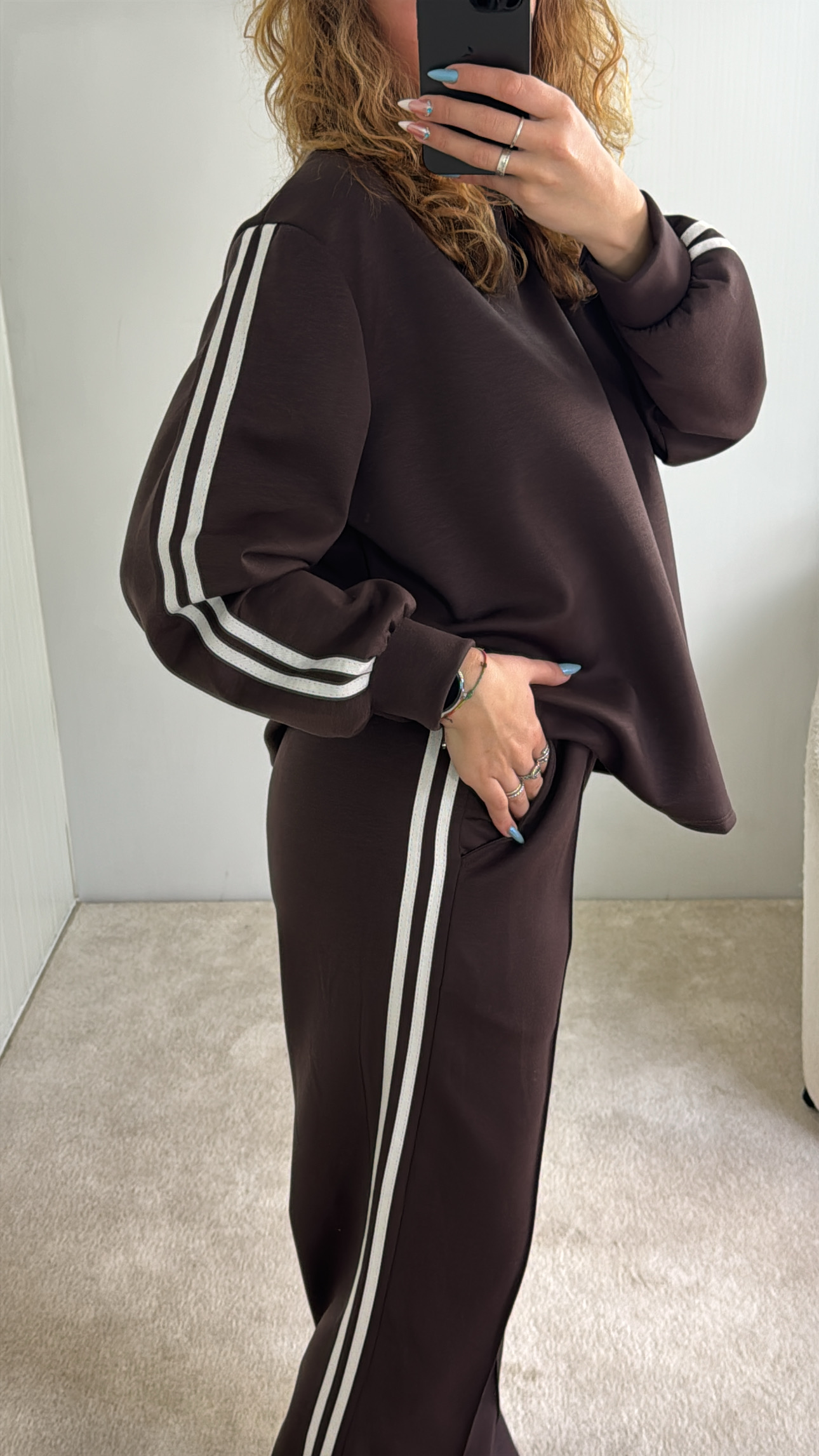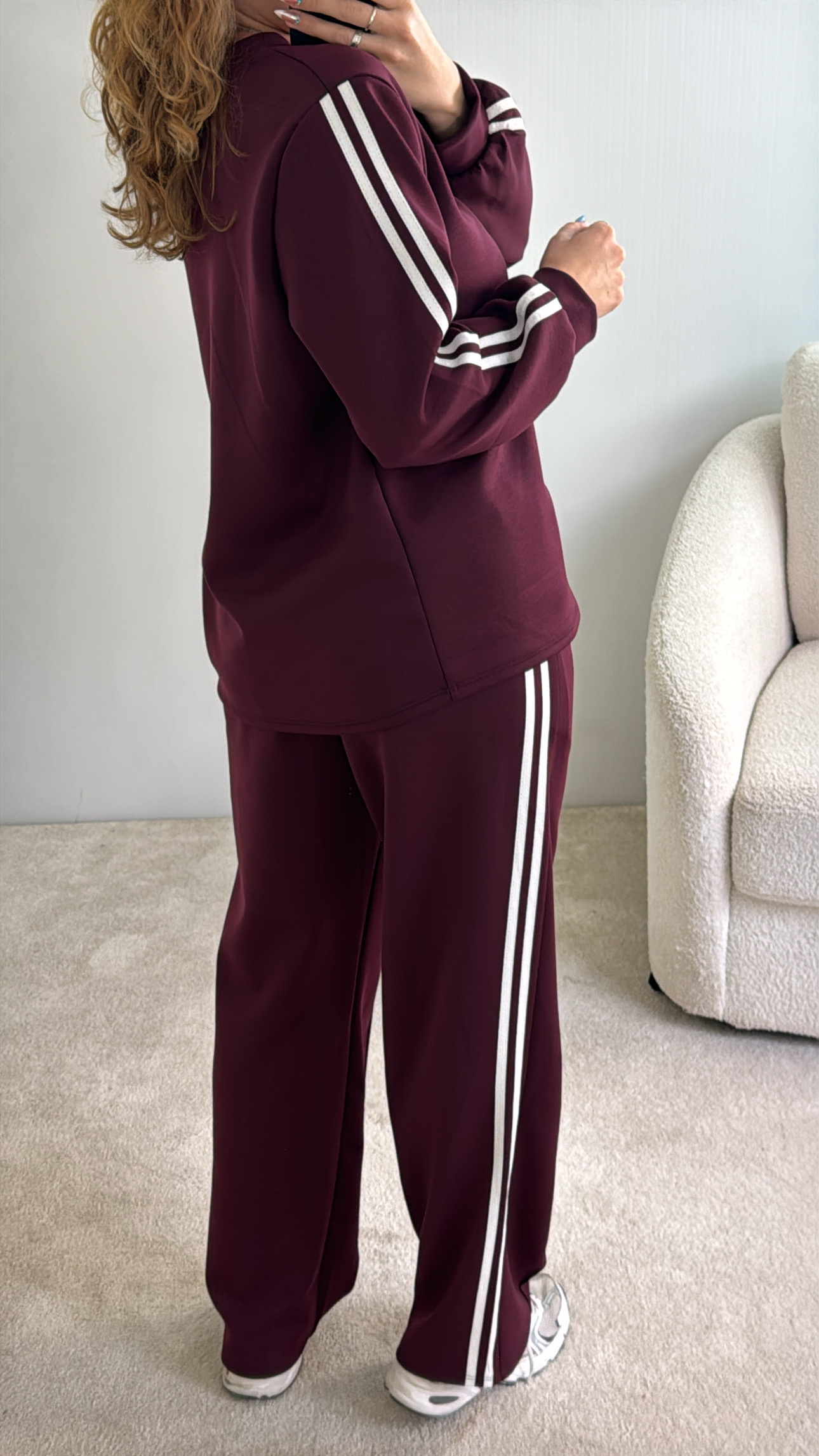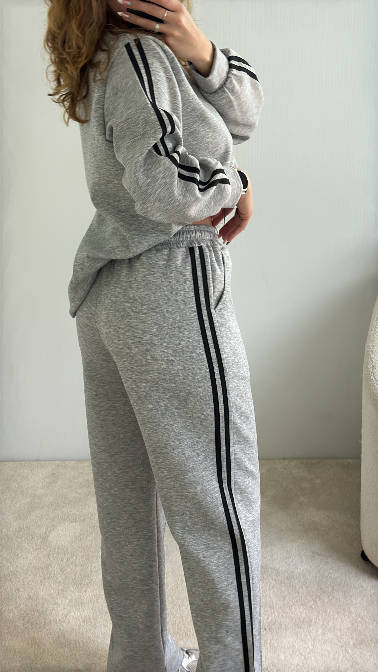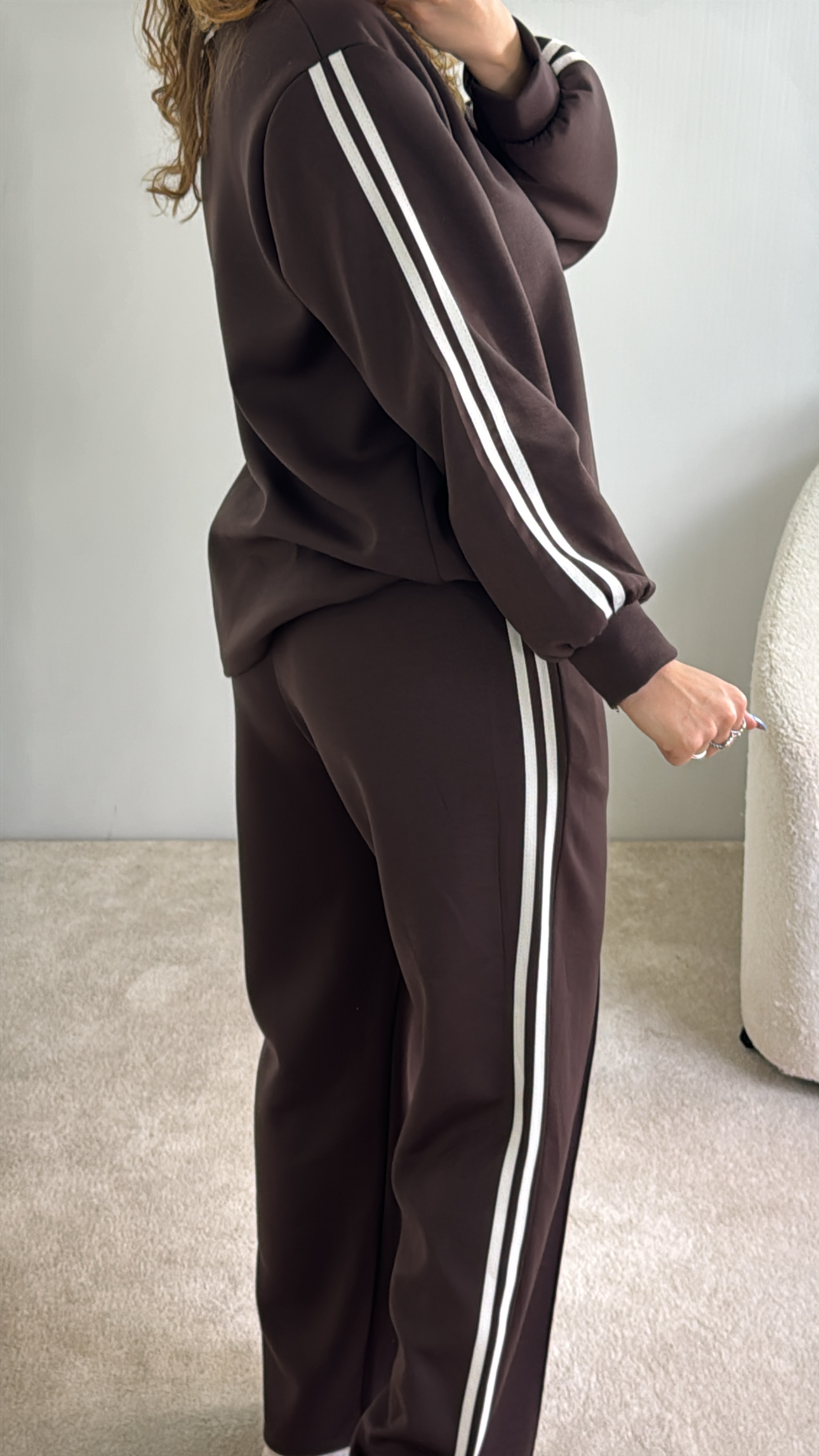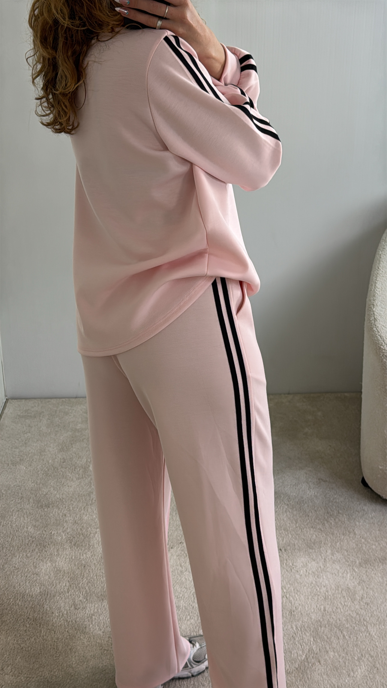 conjunto com riscas nas laterais,