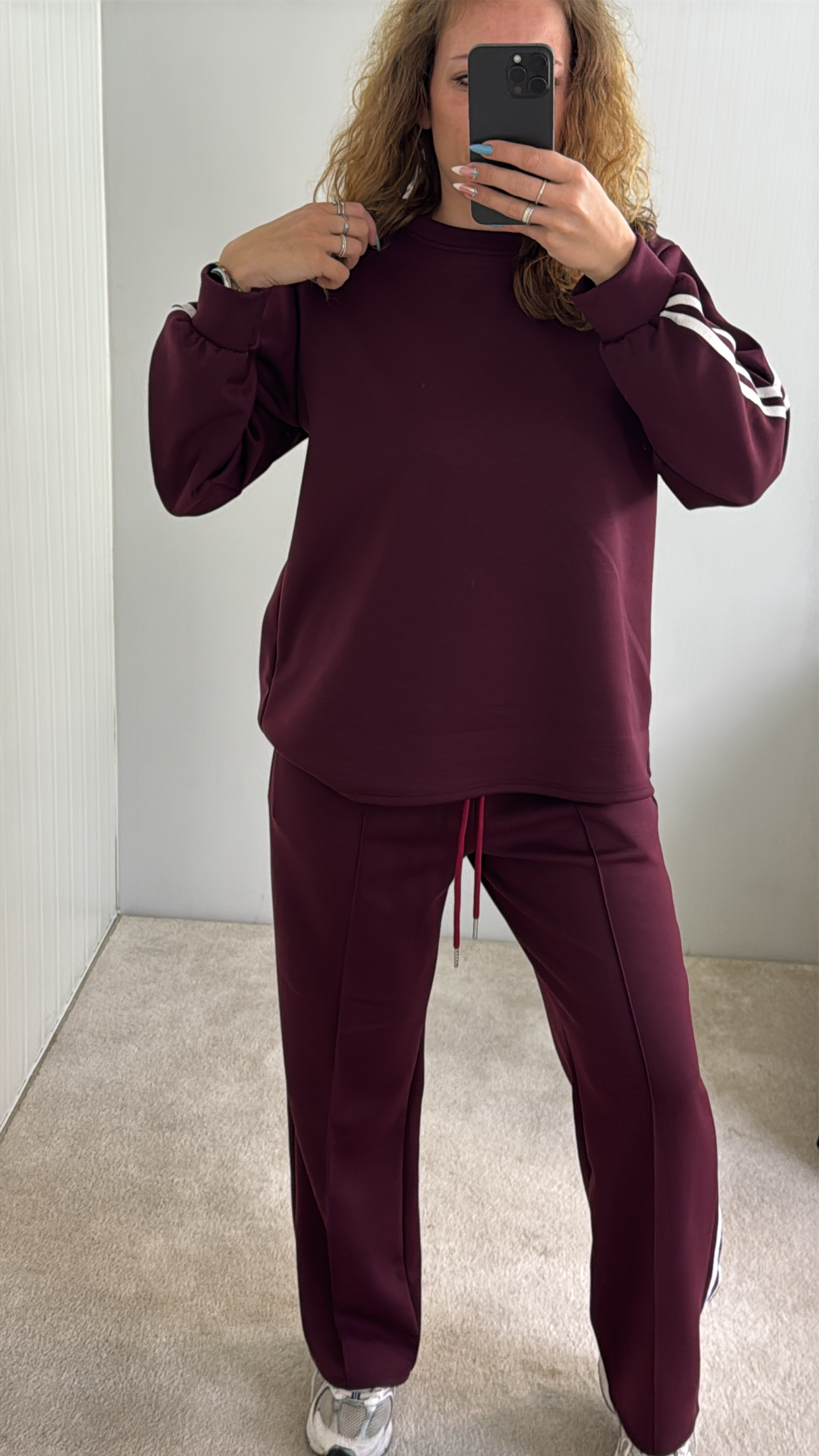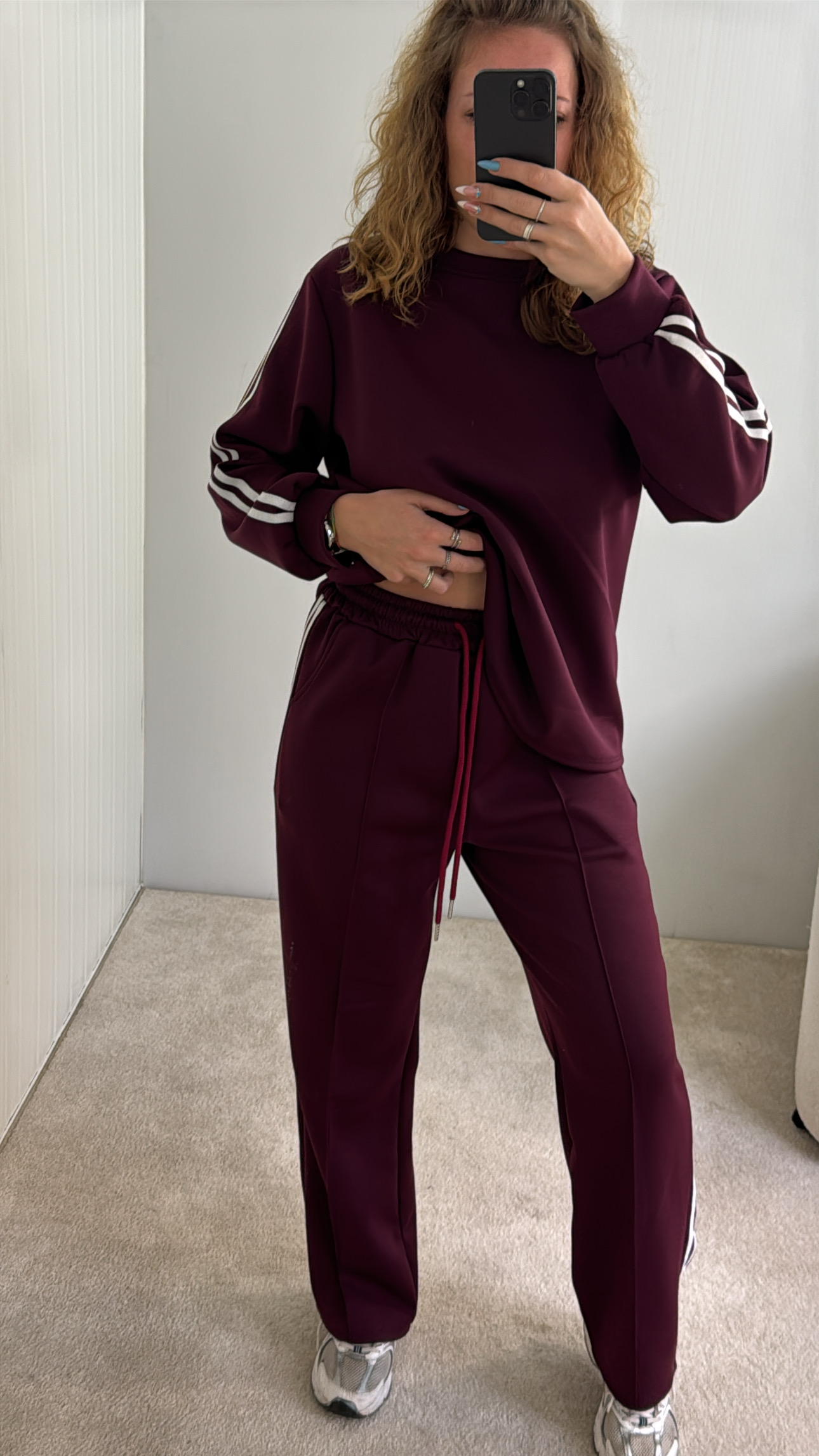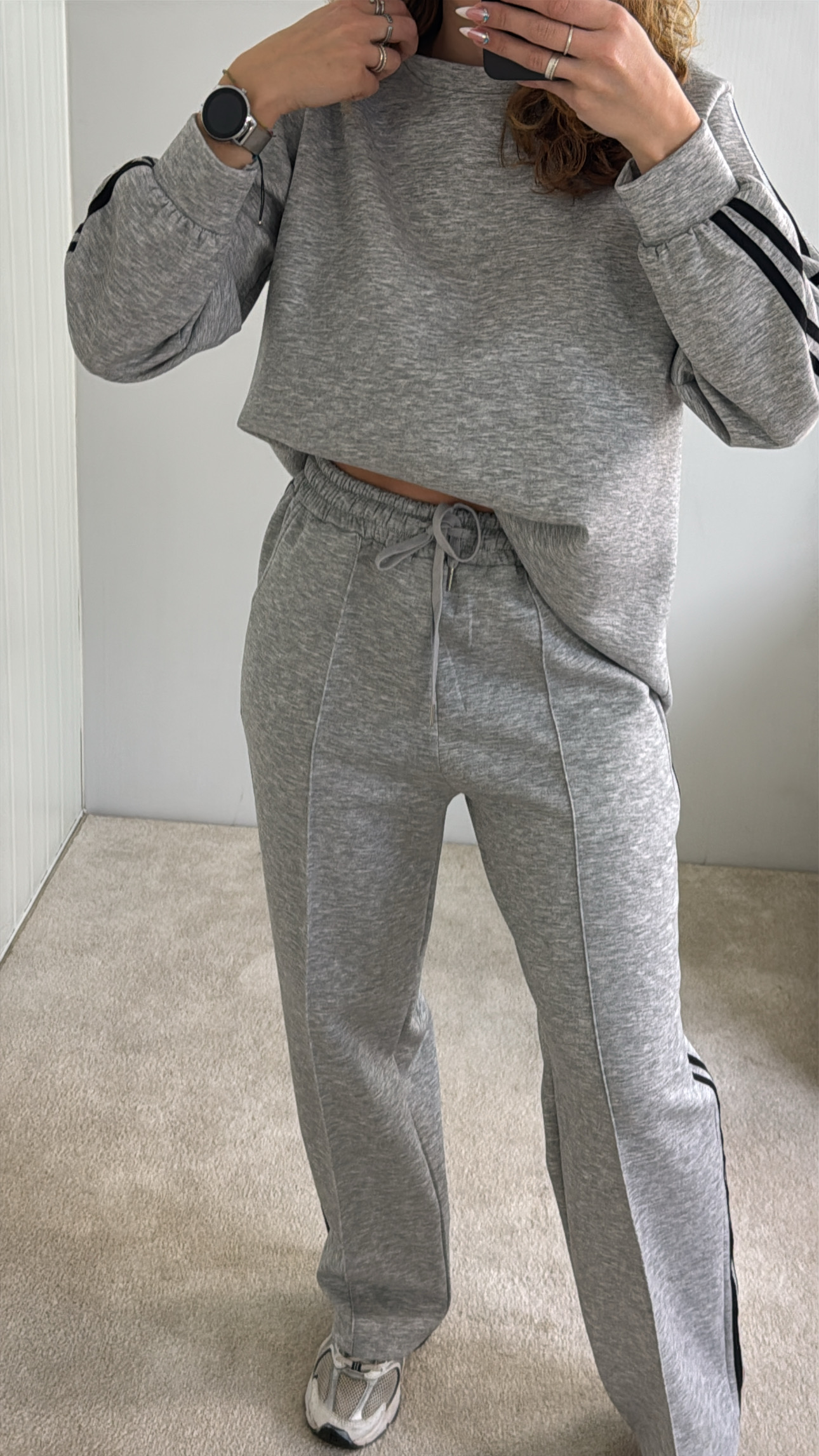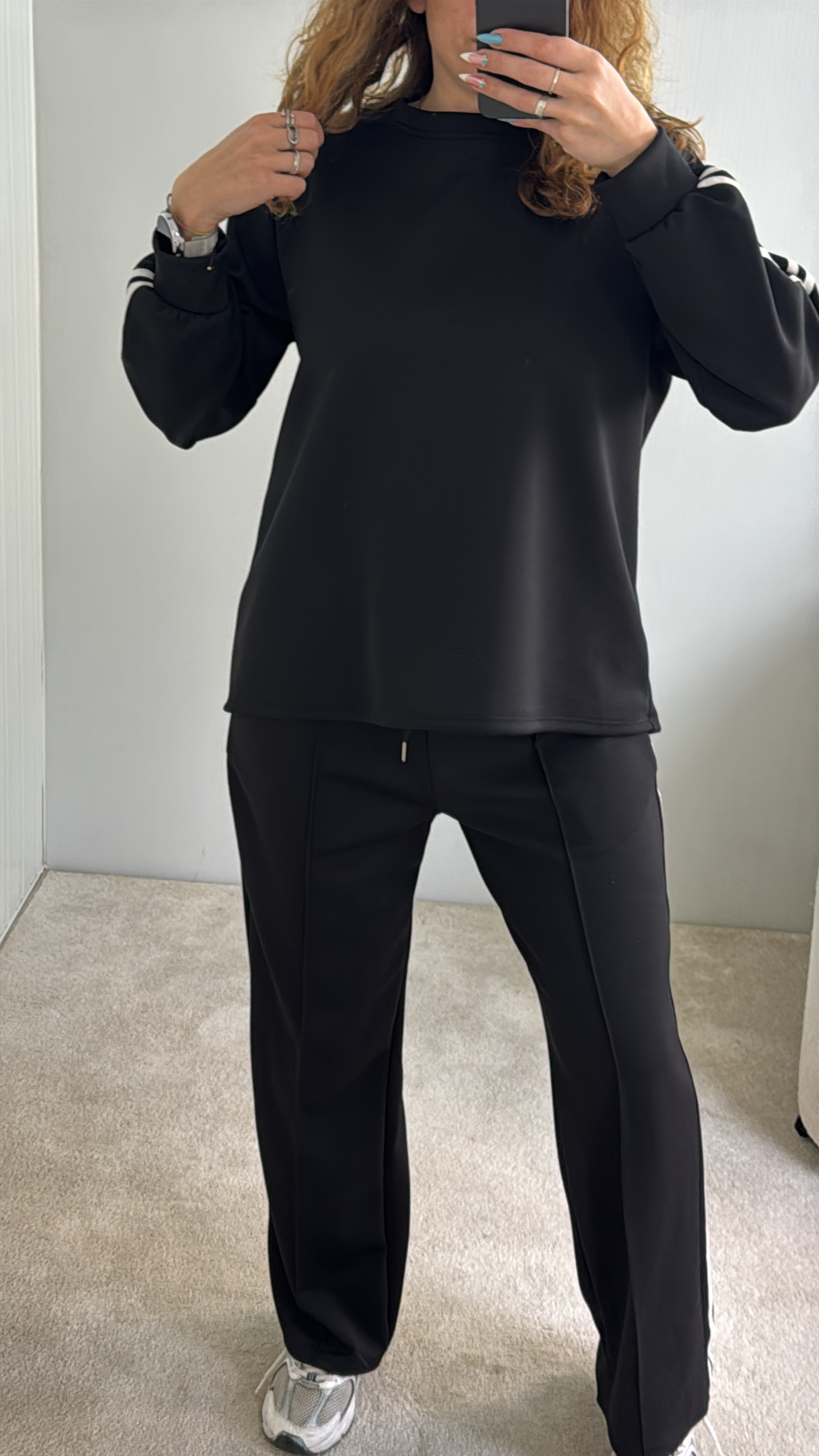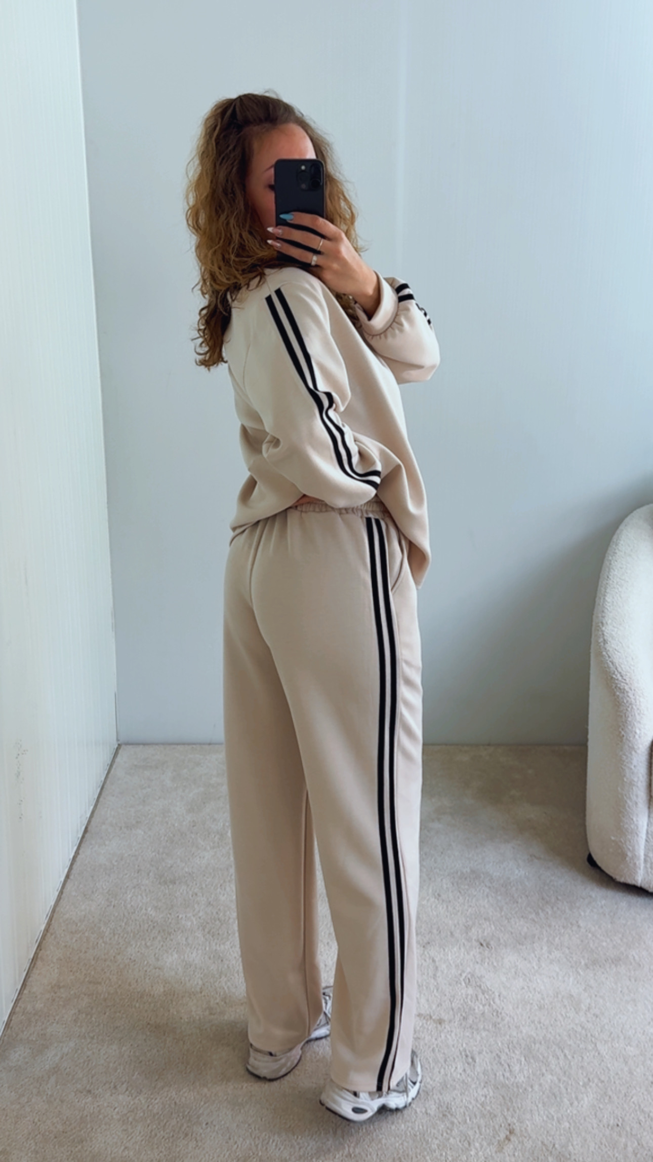 conjunto com riscas nas laterais,