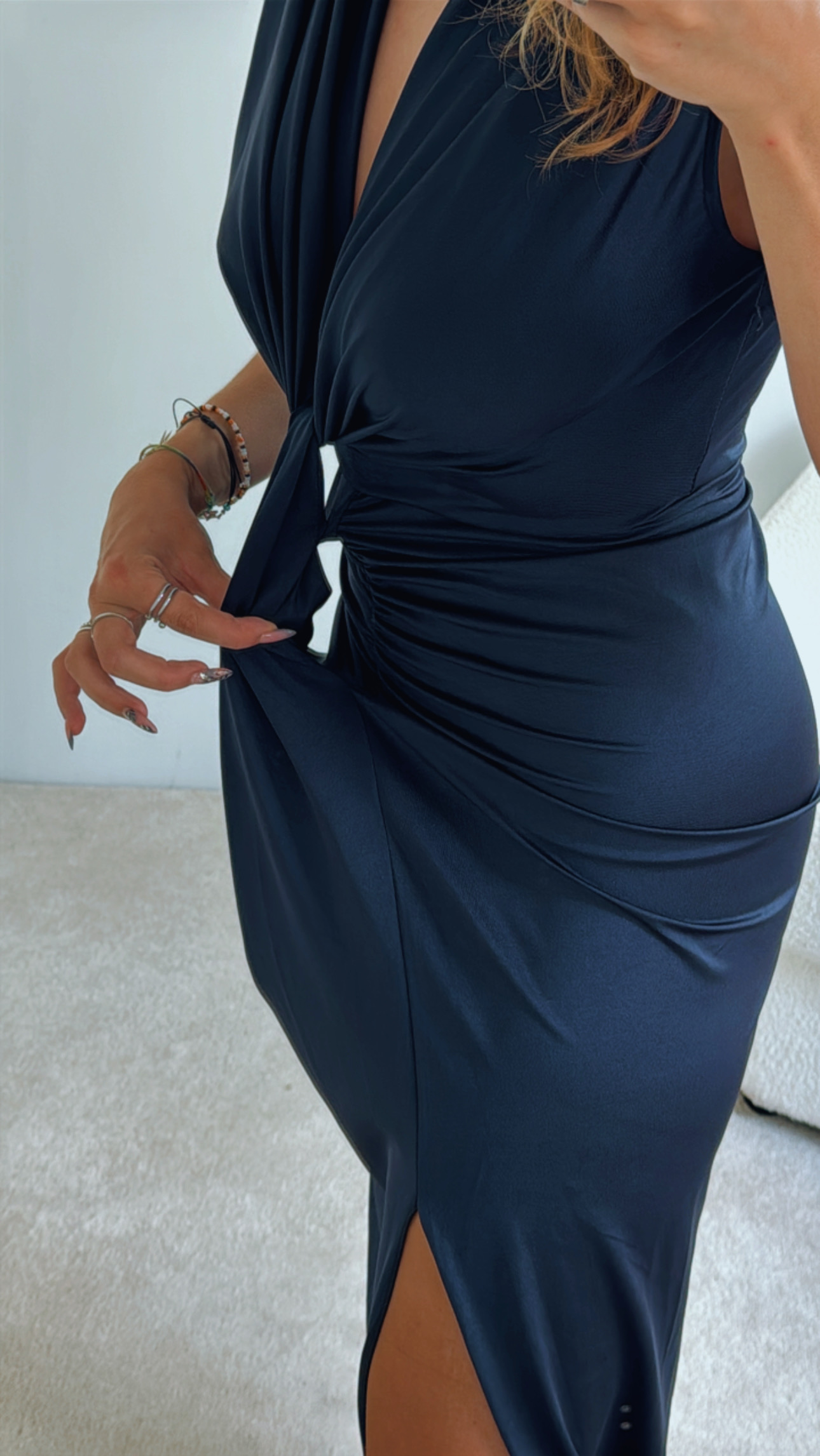 Vestido disfarce barriga,Com tecido acetinado , elástico e tem ombreiras, Tem uma abertura do lado direito, o decote dá para regular, Veste S até XL – Modelo veste M/38, com 1,68cm